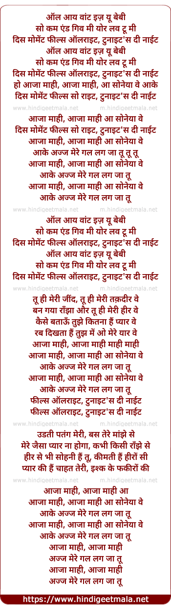 Lyrics of Mahi Aaja (Remix) - ऑल आय वांट इज़ यू बेबी