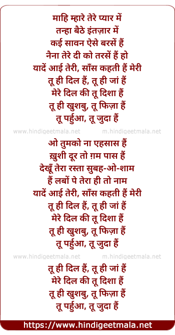 Lyrics of Mahi Mare Tere Pyar Me - माहि म्हारे तेरे प्यार में