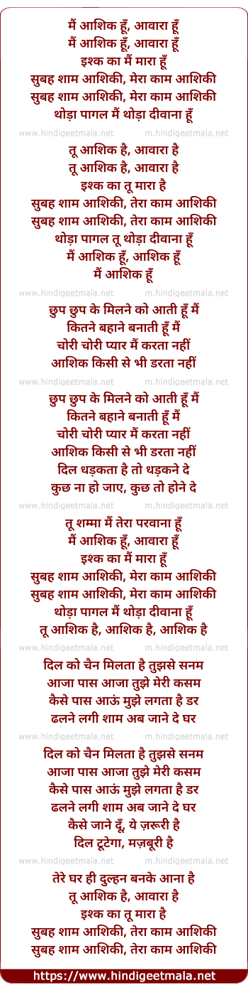 Lyrics of Mai Aashiq Hu Awara Hu - मैं आशिक हूँ आवारा हूँ
