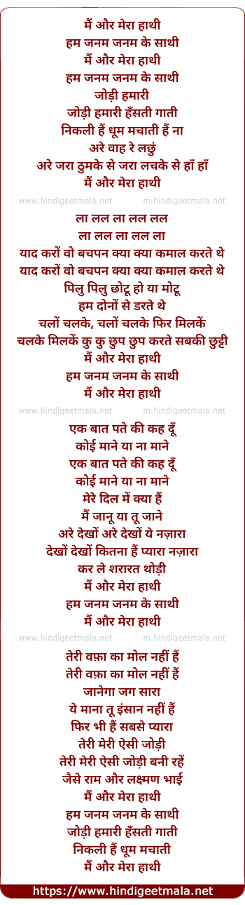 Lyrics of Mai Aur Mera Haathi - मैं और मेरा हाथी