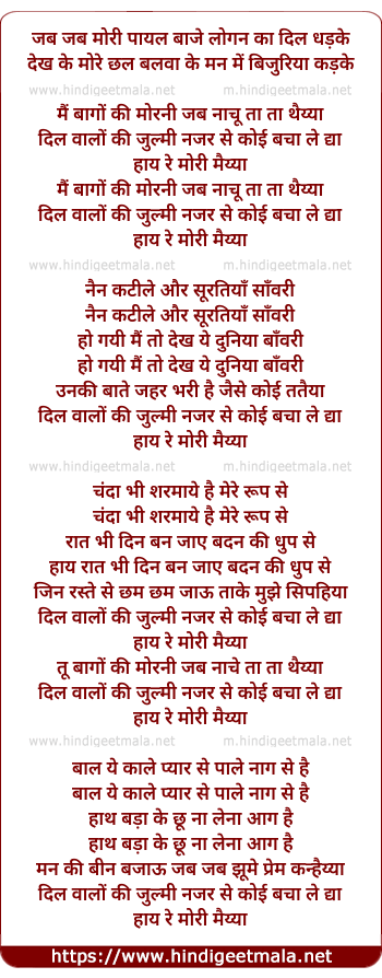 Lyrics of Mai Bagho Ki Morni Jab Nachu - मैं बागों की मोरनी जब नाचू