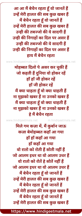Lyrics of Mai Bechain Rahta Hu - मैं बेचैन रहता हूँ