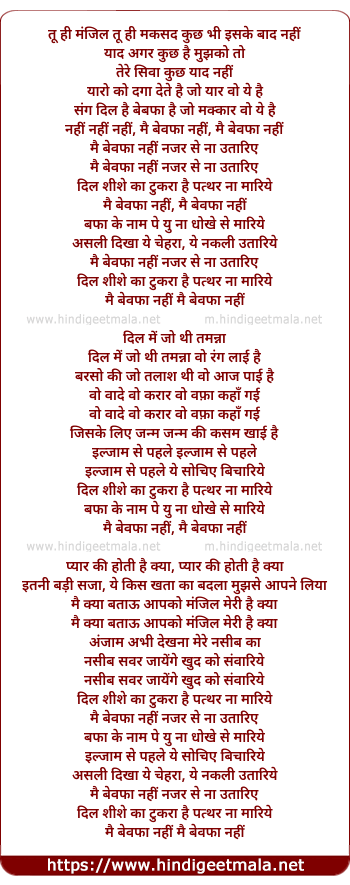 Lyrics of Main Bewafa Nahi Najar Se Na Utariye - मैं बेवफा नहीं नजर से ना उतारिए