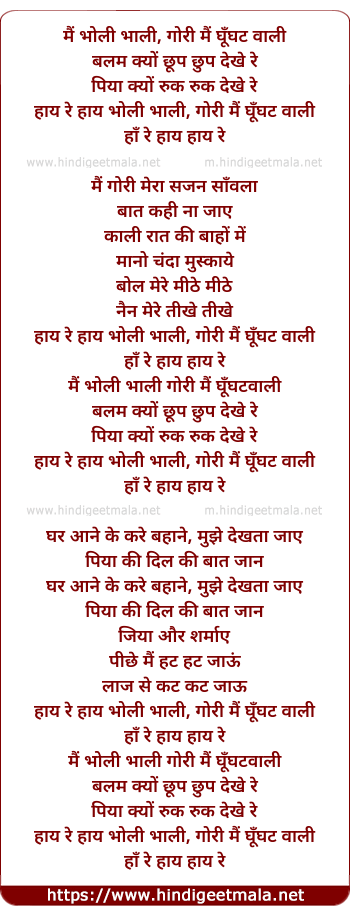 Mai Bholi Bhali Gori Mai Ghunghat Waali - मैं भोली भाली गोरी मैं घूँघट वाली