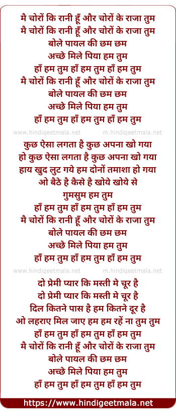Lyrics of Mai Choro Ki Rani Hu - मैं चोरों कि रानी हूँ