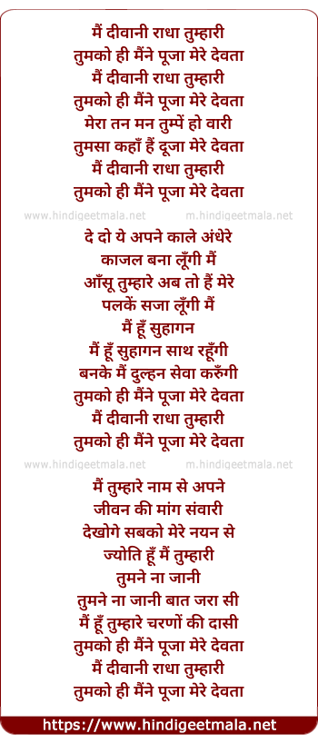 Lyrics of Mai Deewaani Radha Tumhari - मैं दीवानी राधा तुम्हारी