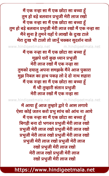 Lyrics of Mai Ek Nanha Sa, Mai Ek Chhota Sa Bachha Hu - मैं एक नन्हा सा मैं एक छोटा सा बच्चा हूँ