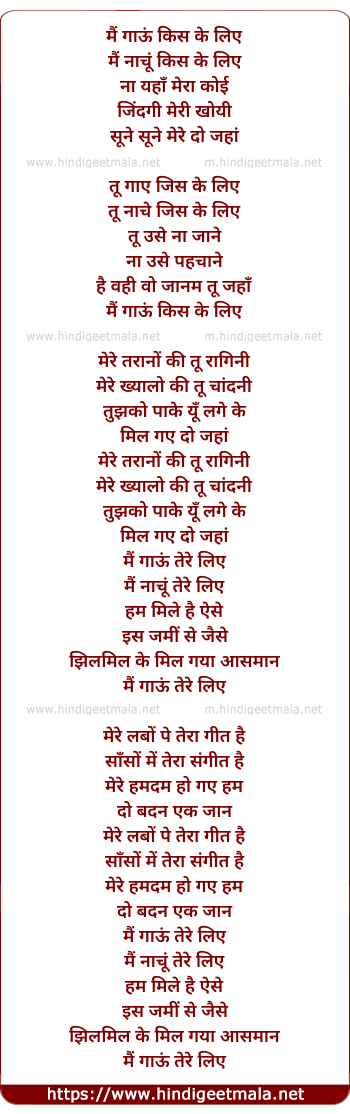 Lyrics of Mai Gau Tere Liye - मैं गाऊं तेरे लिये