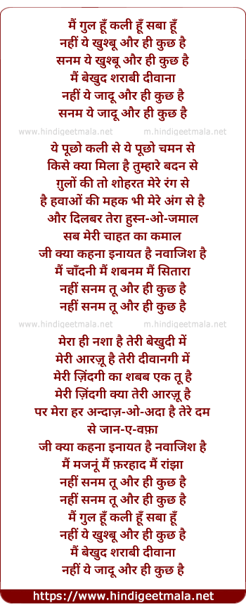 Lyrics of Mai Gul Hu Kali Hu Saba Hu - मैं गुल हूँ कली हूँ सबा हूँ