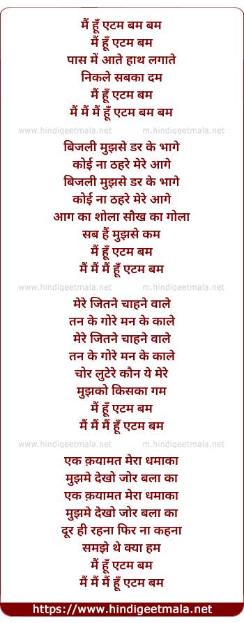 Poetic Translation - Lyrics of Mai Hu Atom Bomb - मैं हूँ एटम बम