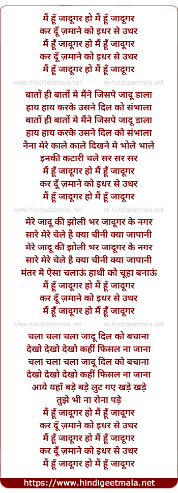 Lyrics of Mai Hu Jadugar - मैं हूँ जादूगर