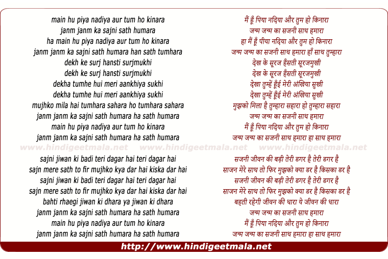 Lyrics of Mai Hu Piya Nadiya - मैं हूँ पिया नदिया