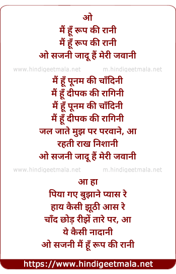 Lyrics of Mai Hu Rup Ki Rani - मैं हूँ रूप की रानी