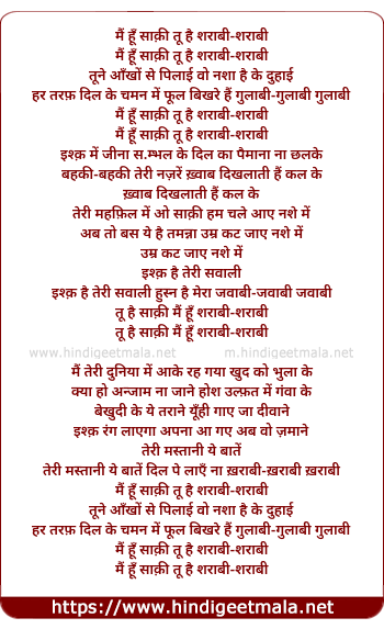 Lyrics of Mai Hu Saaqi Tu Hai Sharabi Sharabi - मैं हूँ साक़ी तू है शराबी-शराबी