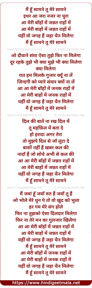 Lyrics of Mai Hu Samne Tu Mere Samne - मैं हूँ सामने तू मेरे सामने