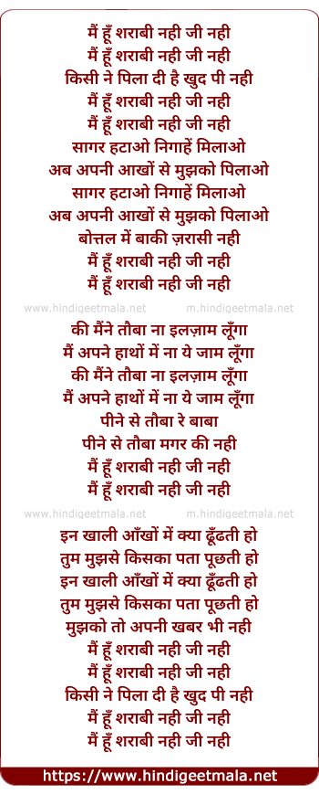 Lyrics of Mai Hu Sharabi Nahi Ji Nahi - मैं हूँ शराबी नही जी नही