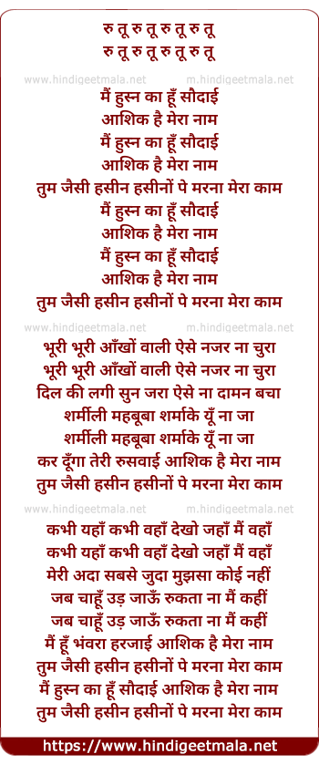 Lyrics of Mai Husan Ka Hu Saudayi - मैं हुस्न का हूँ सौदाई