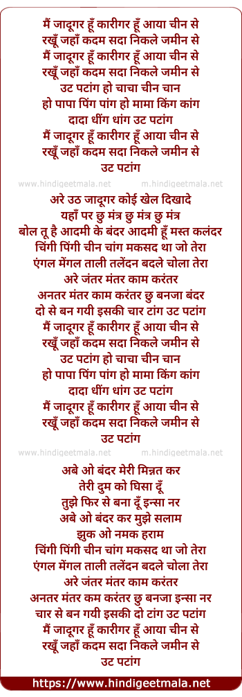 Lyrics of Mai Jaadugar Hu Karigar Hu - मैं जादूगर हूँ कारीगर हूँ