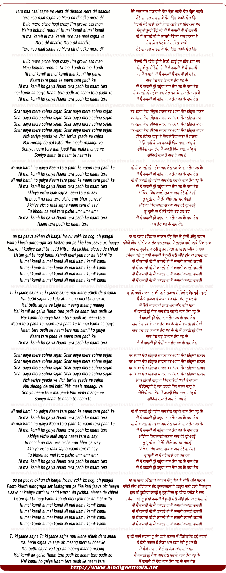Ni mai kamli ni mai kamli Tere naa naal sajna ve