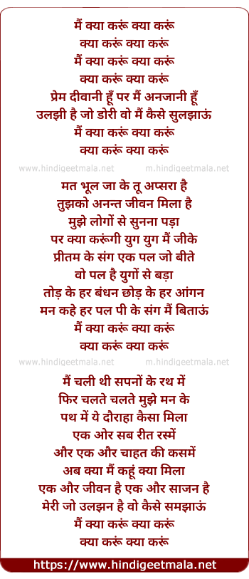 Lyrics of Mai Kya Karu Kya Karu - मैं क्या करूं क्या करूं