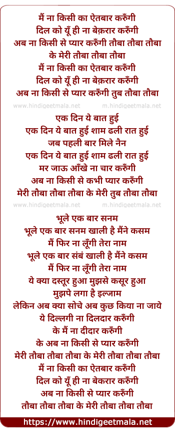 Lyrics of Main Na Kisi Ka Aitbar Karungi - मैं ना किसी का ऐतबार करुँगी