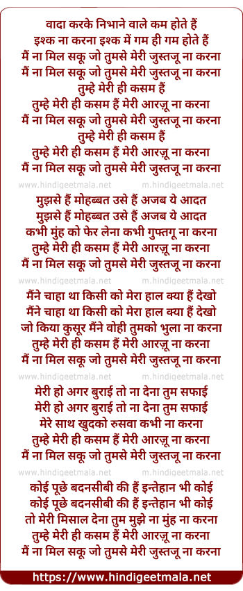 Lyrics of Mai Naa Mil Saku Jo Tumse - मैं ना मिल सकू जो तुमसे