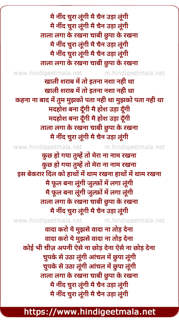 Lyrics of Mai Neend Chura Lungi, Mai Chain Uda Lungi - मै नींद चुरा लूंगी, मै चैन उड़ा लूंगी