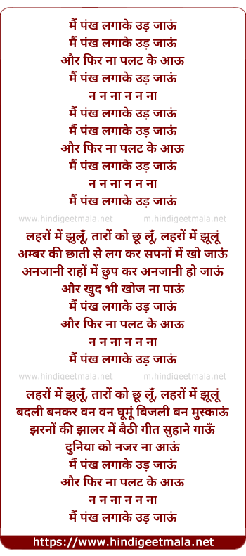 Lyrics of Mai Pankh Lagake Ud Jau - मैं पंख लगाके उड़ जाऊं