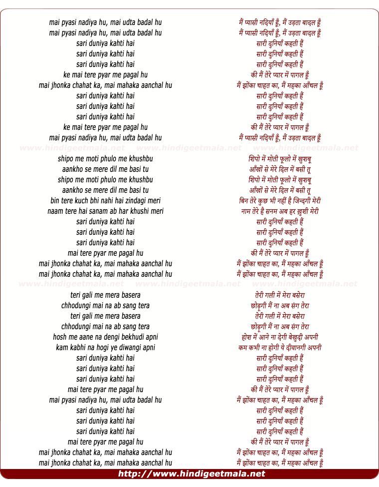 Comments for lyrics of song "Mai Pyasi Nadiya Hu"
