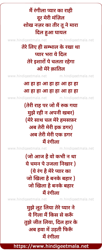 Mai Rangila Pyar Kaa Rahee - मैं रंगीला प्यार का राही