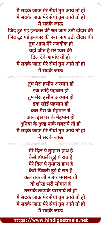 Lyrics of Mai Sadqe Jau Mere Saiya Tum Aaye To Ho - मैं सदके जाऊँ मेरे सैयां तुम आये तो हो
