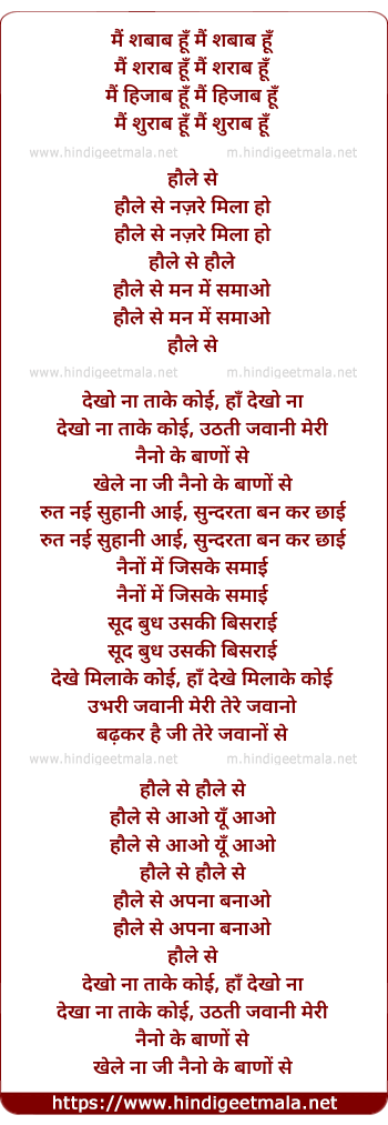 Lyrics of Mai Shabab Hu Mai Sharab Hu - मैं शबाब हूँ मैं शबाब हूँ