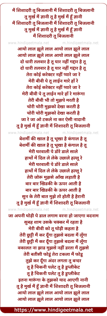 Mai Shishadri Tu Bijlani - मैं शिशादरी तू बिजलानी