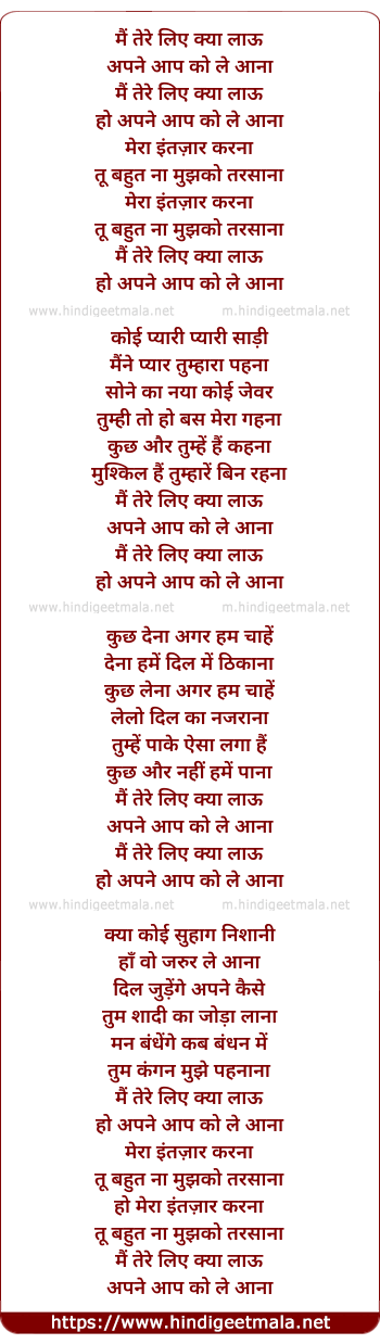 Lyrics of Mai Tere Liye Kya Laaun - मैं तेरे लिए क्या लाऊँ