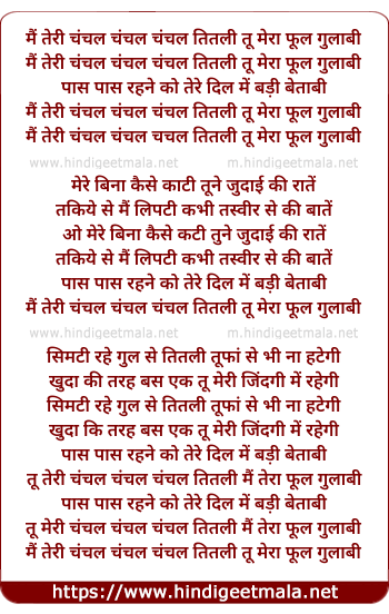 main teri chanchal chanchal chanchal titli tu mera phul gulabi