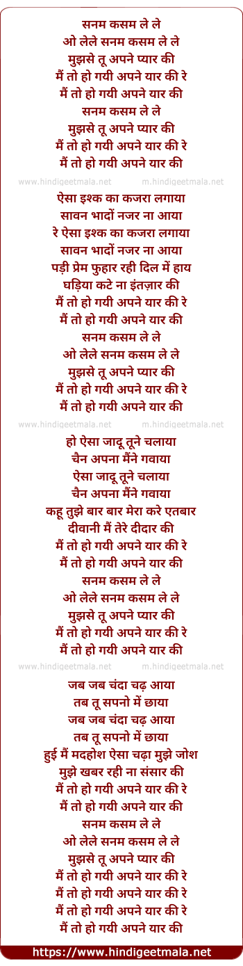 Lyrics of Mai To Ho Gayi Apne Yaar Ki - सनम कसम ले ले
