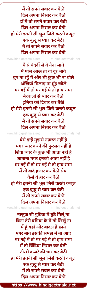 Lyrics of Mai To Sapne Sanwar Kar Baithi - मैं तो सपने सवार कर बैठी