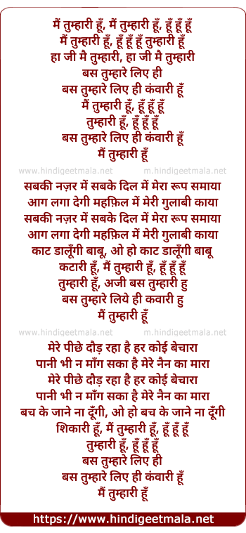 Lyrics of Mai Tumhari Hu - मैं तुम्हारी हूँ