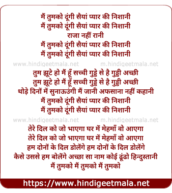 Lyrics of Mai Tumko Dungi Saiya Pyar Ki Nishani - मैं तुमको दूंगी सैयां प्यार की निशानी