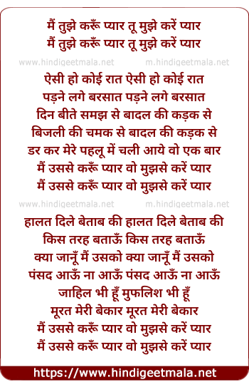 Lyrics of Mai Usse Karu Pyar - मैं उससे करूँ प्यार