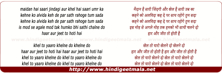 Lyrics of Maidan Hai Saari Zindagi - मैदान है सारी जिंदगी maidan hai saari jindagi aur khel hai saari umr ka