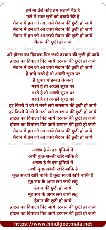Lyrics of Hame Na Chede Koi, Maidan Me Hum Jo Aa Jaaye - हमे ना छेड़े कोई, मैदान में हम जो आ जाये