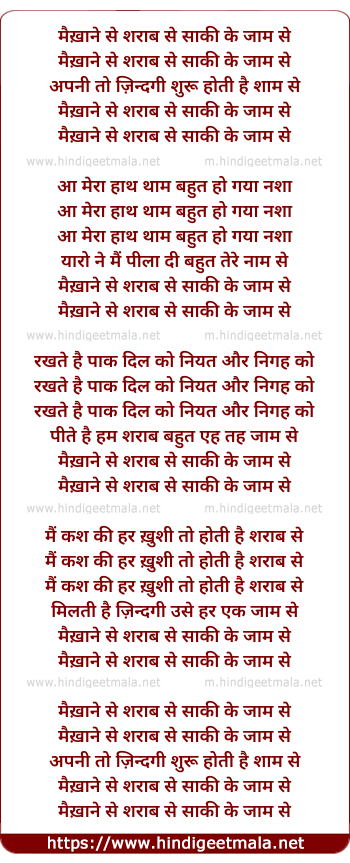 Lyrics of Maikhane Se Sharab Se - मैख़ाने से शराब से