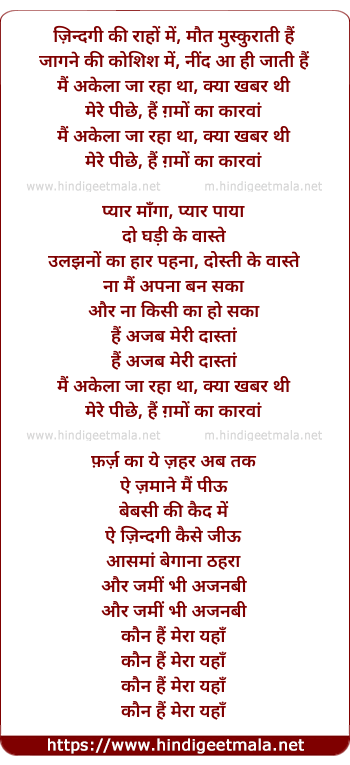 Lyrics of Main Akela Ja Raha Tha Kya Khabar Thi Mere Pichhe Hai Gamo Ka Karva - मैं अकेला जा रहा था क्या खबर थी मेरे पीछे हैं ग़मों का कारवां