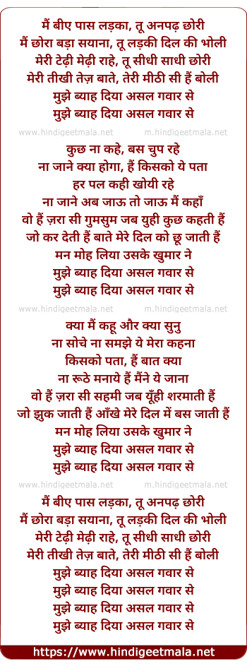 mujhe byaah diya asal gawaar se