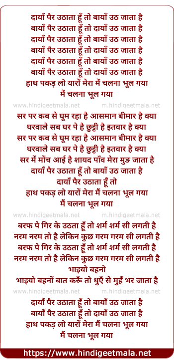 Lyrics of Main Chalna Bhool Gayaa - मैं चलना भूल गया