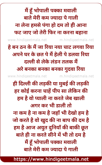 Lyrics of Main Hoon Bhopali - मैं हूँ भोपाली पक्का मवाली