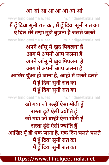 Lyrics of Main Hu Diya Suni Rat Ka - मैं हूँ दिया सुनी रात का
