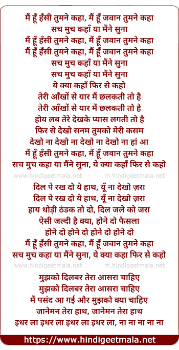 main hoon hansi tumane kaha, main hoon jawaan tumane kaha