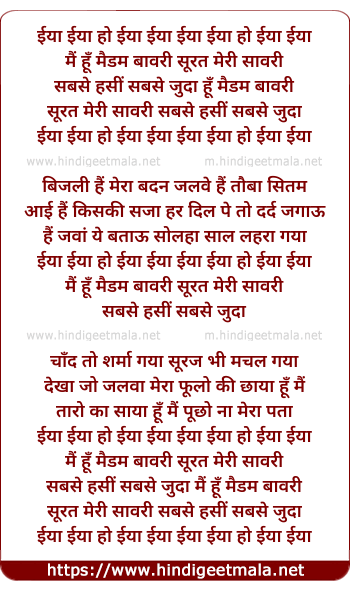Lyrics of Main Hoon Madam Bawri Surat Meri Sawali Sabse Hasin Sabse Juda - मैं हूँ मैडम बावरी सूरत मेरी सावरी सबसे हसीं सबसे जुदा